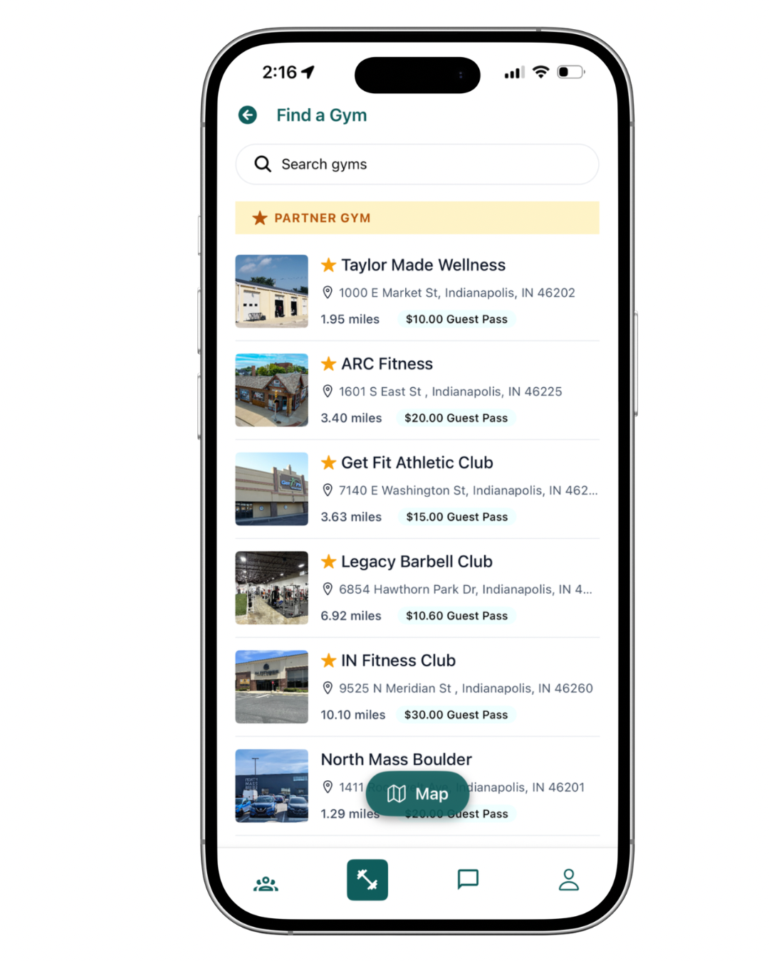 Partner Gyms on the app